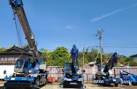 | 25tラフター 1台 | 16tラフター1台 | 13tラフター 1台 | 4.9tクローラークレーン 1台 |